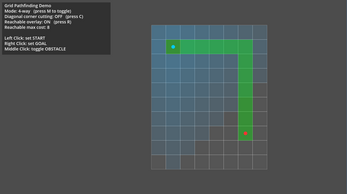 Built to integrate with the Grid Utility addon, it provides A* pathfinding and reachable-area helpers without making gameplay assumptions. The logic is fully decoupled and suitable for a wide range of grid-based games and tools.